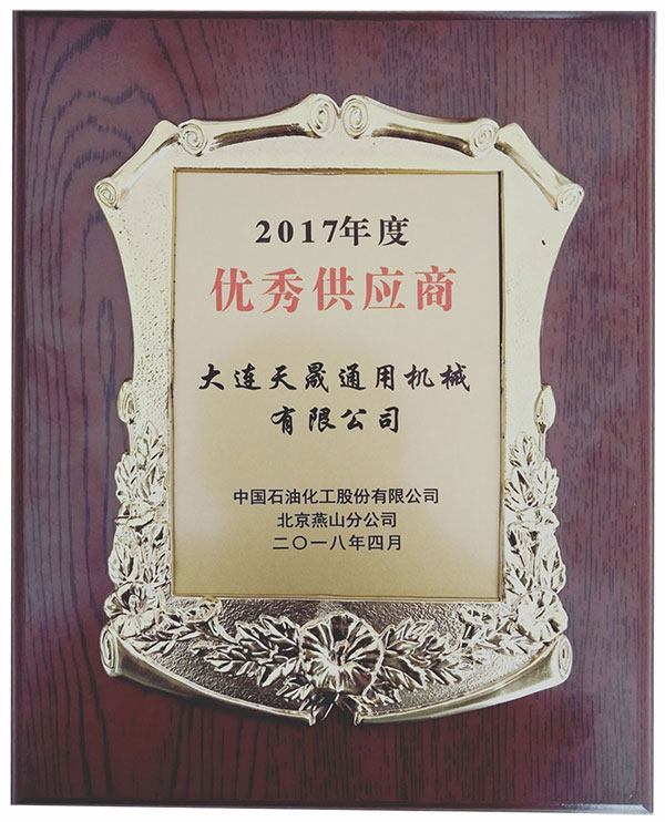 大连天晟通用机械有限公司喜获中国石油化工股份有限公司北京燕山分公司“2017年度优秀供应商”称号。